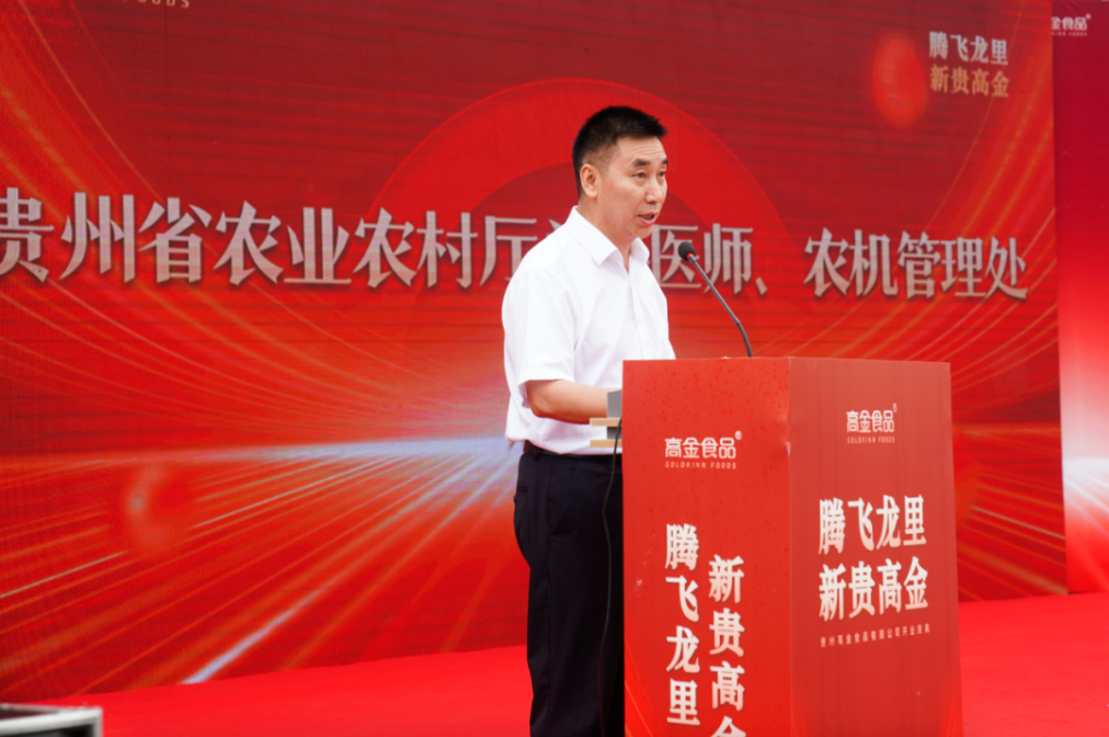 貴州省農(nóng)業(yè)農(nóng)村廳總獸醫(yī)師、農(nóng)機(jī)管理處處長(zhǎng)唐隆強(qiáng),貴州省農(nóng)業(yè)農(nóng)村廳獸醫(yī)管理處處長(zhǎng)唐宇,貴州省生豬產(chǎn)業(yè)發(fā)展工作專班常務(wù)副班長(zhǎng)楊紅文,黔南州政府黨組成員、副州長(zhǎng)楊再軍,黔南州工業(yè)和信息化局黨組書(shū)記、局長(zhǎng)黃淮,黔南州農(nóng)業(yè)農(nóng)村局黨組書(shū)記、局長(zhǎng)潘建輝,黔南州生態(tài)環(huán)境局黨組成員、副局長(zhǎng)韋華艷,龍里縣委副書(shū)記、縣政府縣長(zhǎng)馮異星等政府領(lǐng)導(dǎo),相關(guān)客戶代表,以及高金實(shí)業(yè)集團(tuán)輪值CEO 任艷、貴州高金食品總經(jīng)理張亮參加會(huì)議。